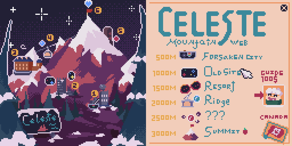 A pixel art celeste fanart for the Community Pixel Art Challenge
